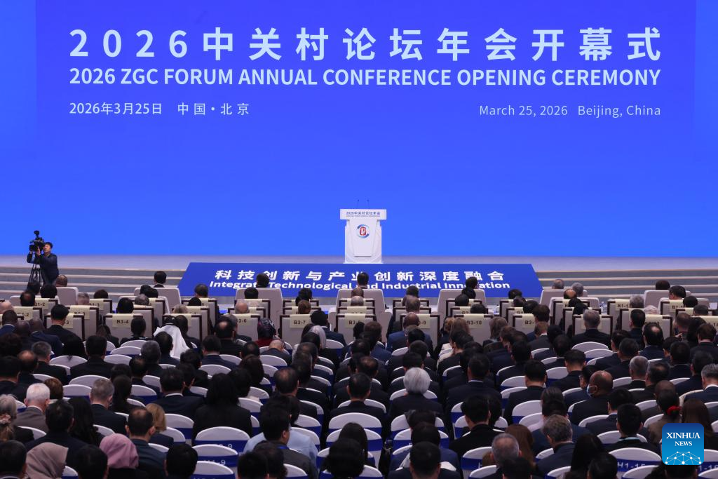 This photo taken on March 25, 2026 shows a scene at the opening ceremony of the 2026 Zhongguancun Forum Annual Conference in Beijing, capital of China. The 2026 Zhongguancun Forum runs from March 25 to 29 under the theme "Full Integration Between Technological and Industrial Innovation." (Photo/Jin Liwang)