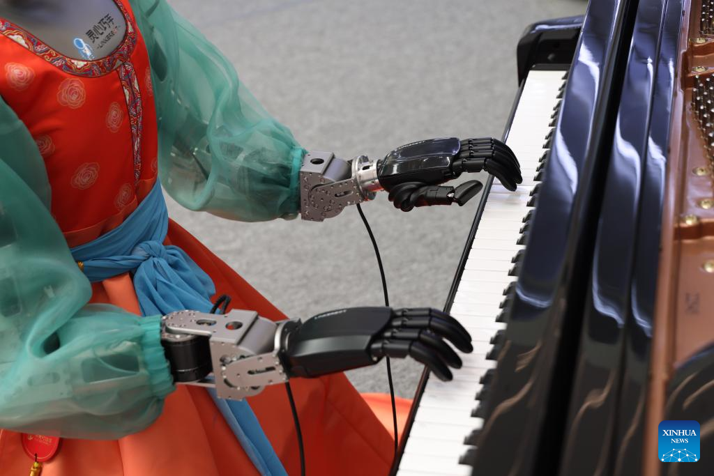 A humanoid robot plays the piano at the Zhongguancun International Innovation Center in Beijing, capital of China, March 25, 2026. The 2026 Zhongguancun Forum runs from March 25 to 29 under the theme "Full Integration Between Technological and Industrial Innovation." (Photo/Jin Liwang)