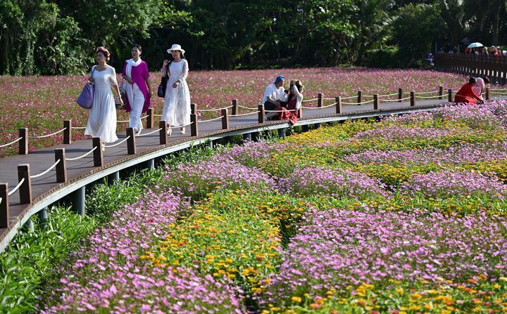 Haikou - A seaside breeze carries the scent of blossoms across the flower fields in a village in the coastal town of Boao, south China's Hainan Province. Amid a "sea" of flowers, tourists are posing for pictures and sharing the stunning view with family and friends.