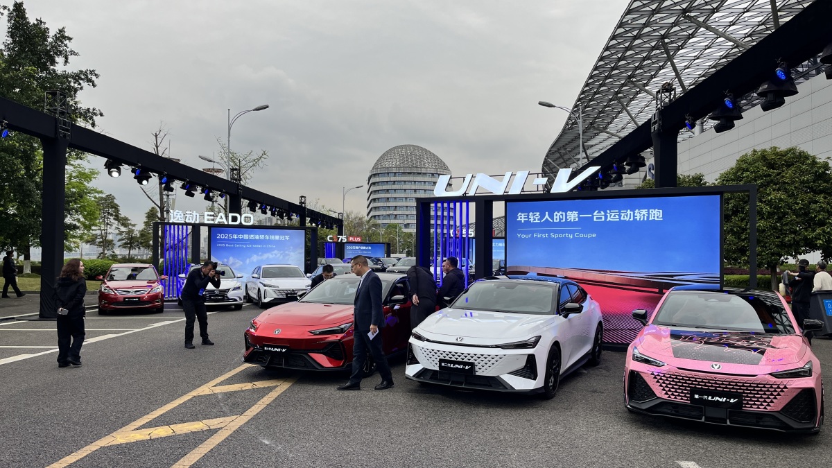Changan showcased several vehicles equipped with its latest Blue Core HEV technology at the launch event on March 30. (Photo/Huxin Luo)