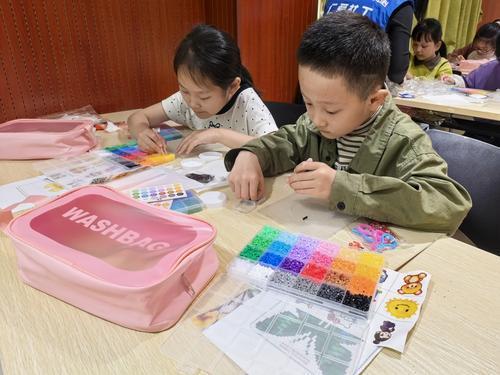 Songling Community in Chongqing’s High-tech Zone hosts the spring break activity “Spring Fields Bean Art: Bug Adventure,” teaching children to create insect patterns with beans. (Photo/interviewees)