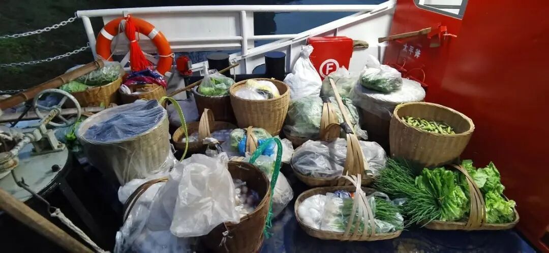 Villagers’ baskets aboard the “New Yuzhongke 2180.” (Photo/Feng Shan)