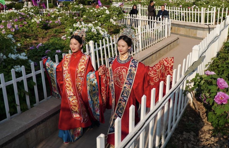 "Peonies are in full bloom, and visitors are flocking to admire them," said Meng Jing, a Hanfu-clad staff member at Guanyu Peony Garden, the largest peony plantation globally according to the Guinness World Records. "More and more people are choosing to wear Hanfu for photos, as peonies and Hanfu complement each other perfectly."