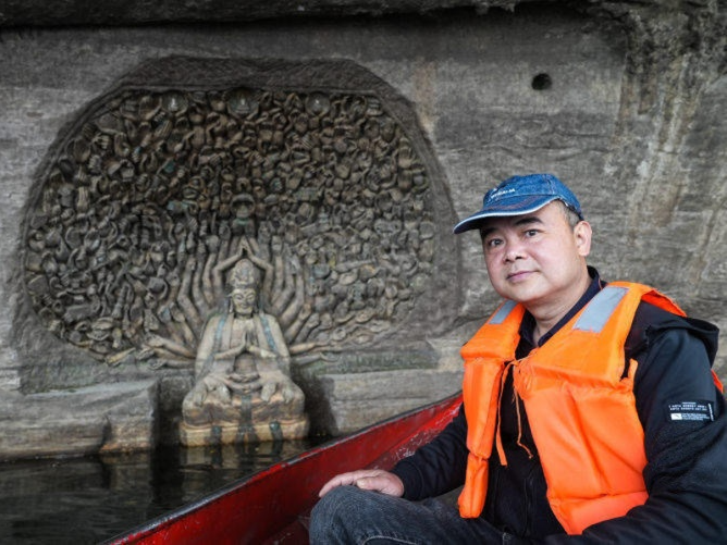 Now in his 50s, Shao recently returned to the reservoir, where villagers immediately recognized him. Standing at the bow of a small boat, he watched as the hands he carved decades ago reappeared between rippling reflections of light.
