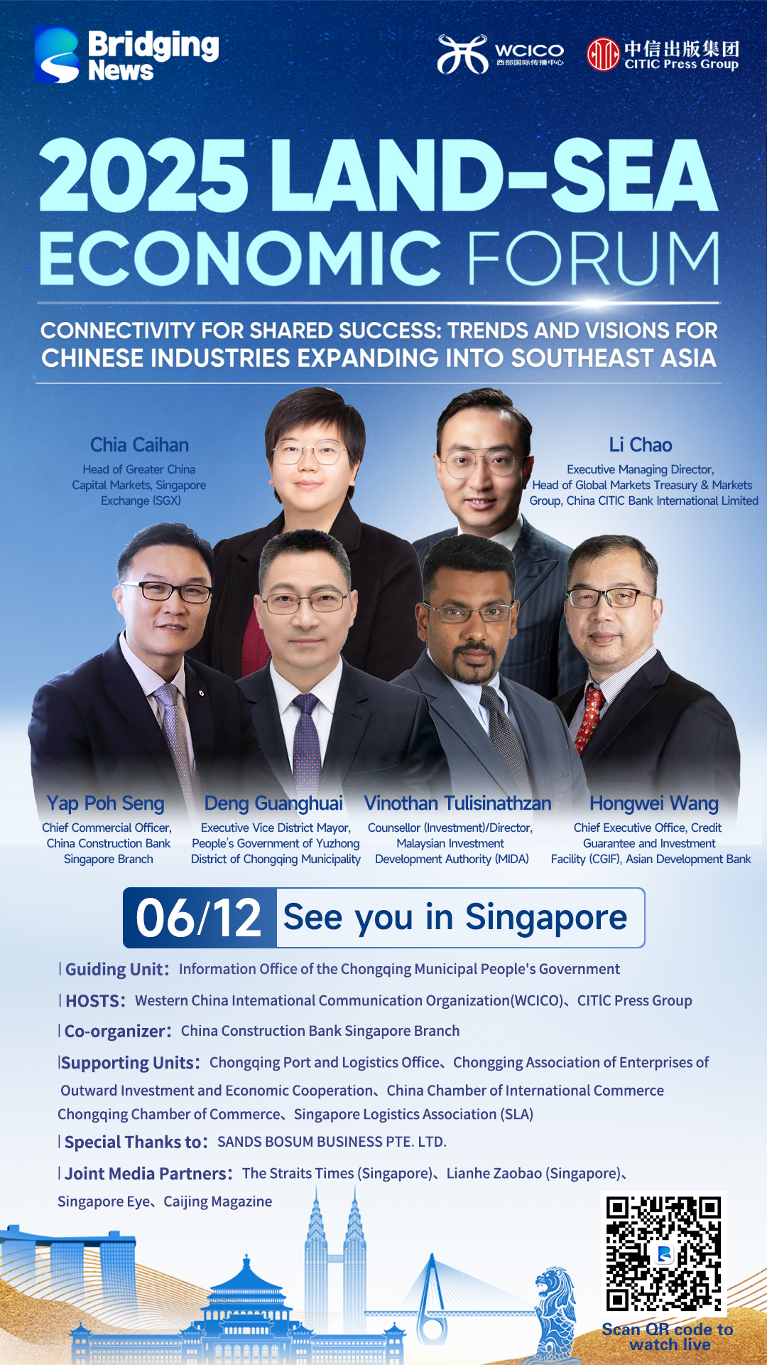 The 2025 Land-Sea Economic Forum will bring together leaders and experts from China and Southeast Asia to explore how Chongqing and Singapore can serve as key hubs for boosting regional connectivity and cooperation.