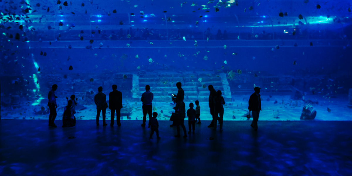 It is a high-quality large-scale Marine theme park integrating eating, living, traveling, shopping and entertainment. Hundreds of species of organisms are exhibited, totaling more than 50,000 tails. The pavilion consists of 12 special exhibition areas such as "Pandora's square"、"sea temple" and so on. The park also has the world's 4th largest viewing glass window and a shark tunnel.