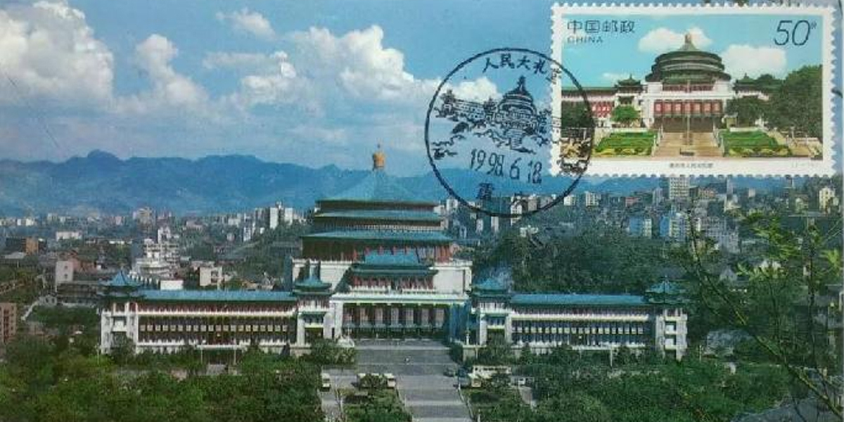 The Great Hall of the People is the meeting place of the Municipal Legislative Bodies, the Chongqing Municipal People's Congress, and also where the Chongqing Two Sessions are held each year. The Great Hall of the People was featured on a stamp in 1998, marking the first anniversary of Chongqing becoming an independent municipality (it was formerly a city in Sichuan Province), in 1997.